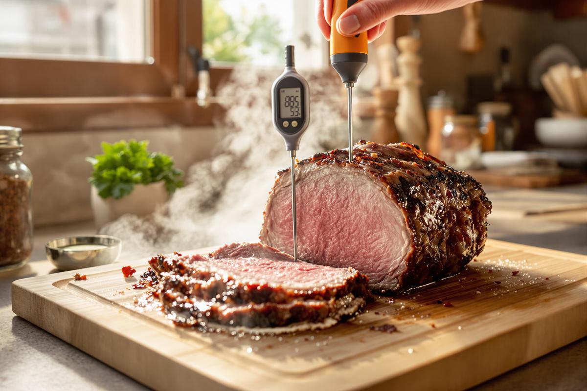 Die Kerntemperatur zeigt dir exakt, wie weit dein Braten gegart ist – von innen. Sie ist viel zuverlässiger als irgendein Timer oder die Farbe der Fleischsäfte. Mit einem einfachen Bratenthermometer kannst du jederzeit prüfen, ob dein Fleisch saftig oder durch ist.