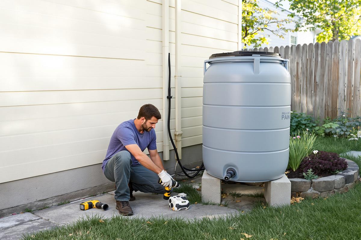 Miss die Stärke deines Fallrohrs und wähle einen passenden Regensammler. Dann entscheidest du, wo genau du ihn einbaust – meist auf etwa 30–60 cm Höhe über der Tonne.