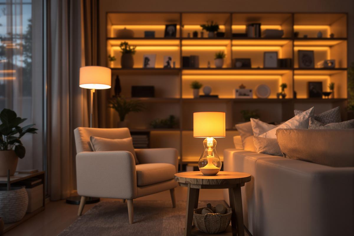 • Nutze LED-Streifen mit warmem Licht für Regale oder TV-Wände.
